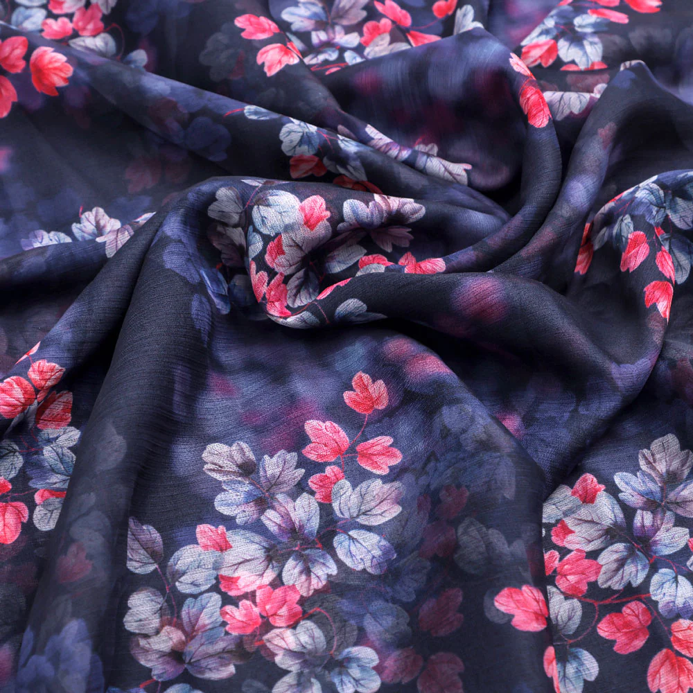 Add a touch of elegance to your wardrobe with our Classy Blue Floral Chiffon Digital Printed Fabric by FAB VOGUE Studio.
